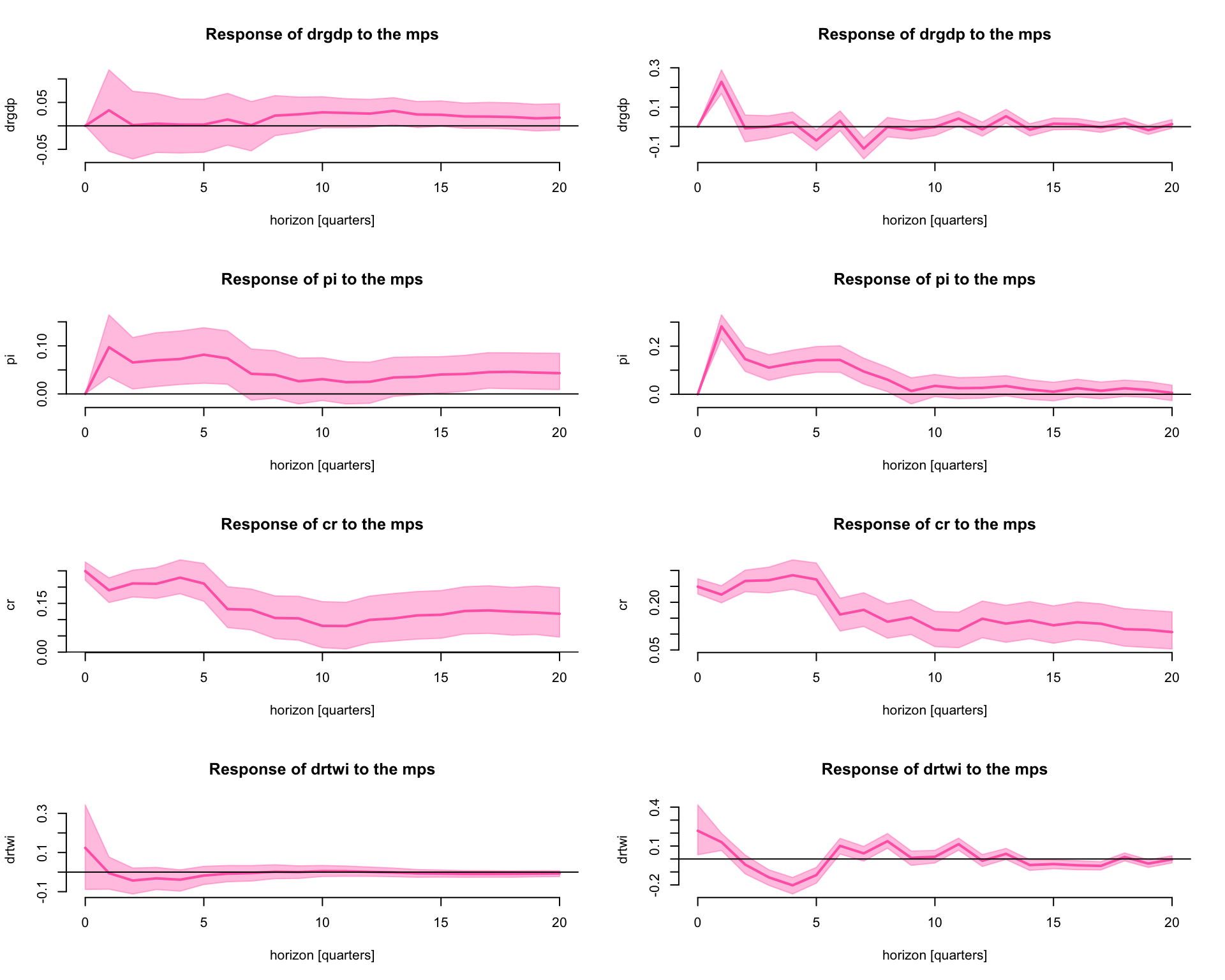 ir_bsvar_lr[,3,,] = 0.25 * ir_bsvar_lr[,3,,] / mean(ir_bsvar_lr[3,3,1,])
